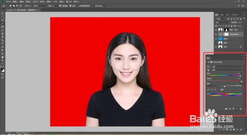 点击色相/饱和度,拖动滑块可以肆意调整颜色,此刻证件照底色就换好了。