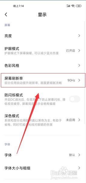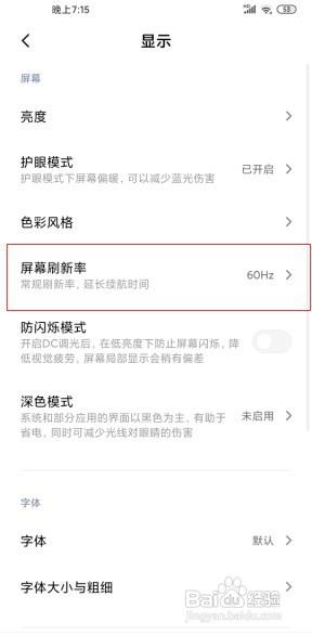 3、页面跳转到显示,如下图所示,点击【屏幕刷新率】