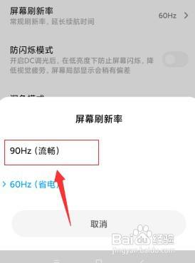 6、如需从头设置【90hz】,点击屏幕刷新率为【90hz】即可。