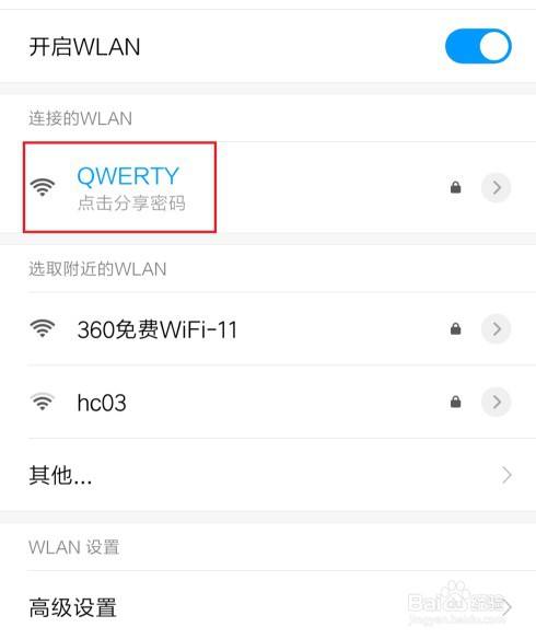 3、进入WLAN页面后,找到并点击我们要查看密码的WiFi。