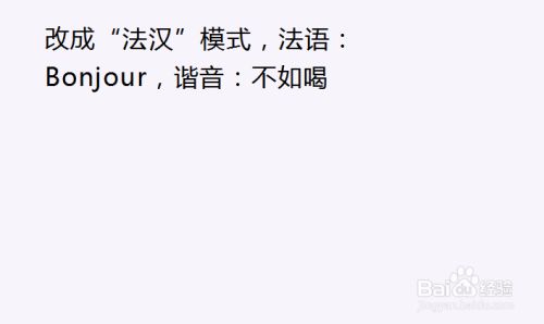 改当作“法汉”模式,法语:Bonjour,谐音:不如喝