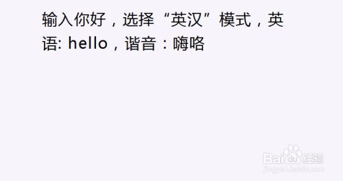 输入您好,选择“英汉”模式,英语: hello,谐音:嗨咯