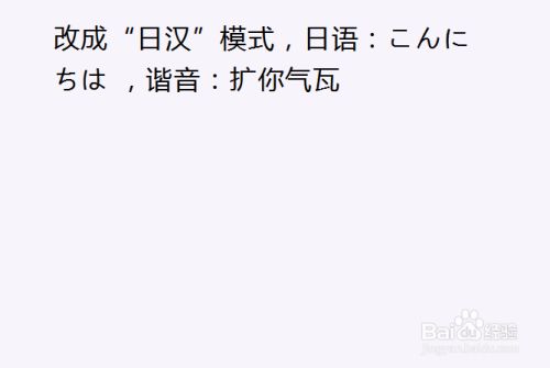 改当作“日汉”模式,日语:こんにちは ,谐音:扩您气瓦