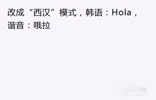 改当作“西汉”模式,韩语:Hola,谐音:哦拉