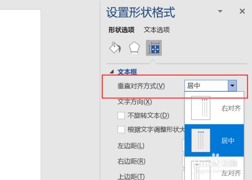 在文本框下的垂直对齐体例中,选择居中对齐。