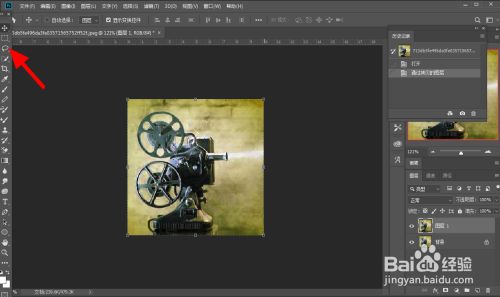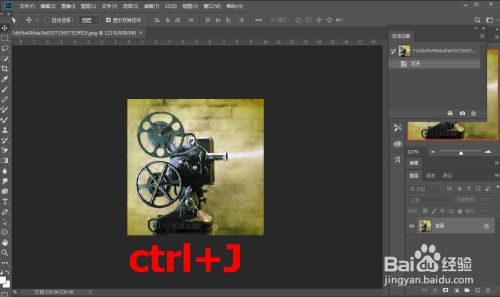 打开PS导入图片后,Ctrl+J复制新建图层 1;