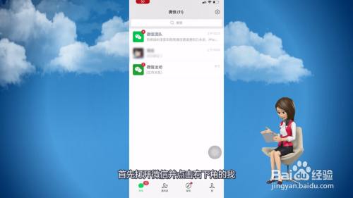 1、首先打开微信并点击右下角的我。