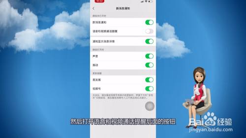 然后打开语音和视频通话提醒后面的按钮。