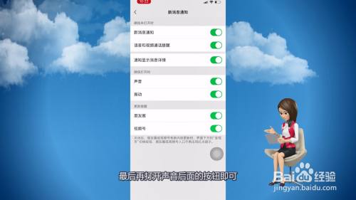 4、然后打开语音和视频通话提醒后面的按钮。