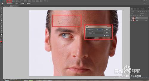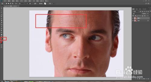 点击污点修复画笔东西,把模式改为变亮,然后涂抹小的皱纹,这样不会粉碎皮肤的肌理质感。