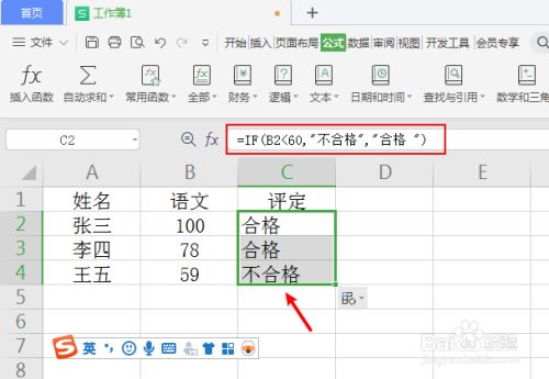 设置成果值,好比:真值是“不及格”,假值是“及格”,再点击“确定”。