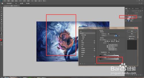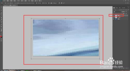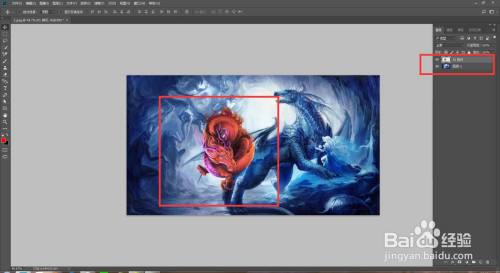 点击布景图层,在抠出的物体旁边用矩形选框东西框选一块布景,按ctrl+j键复制出来置于顶层,按ctrl+t放大铺满整个画面,点击确定。