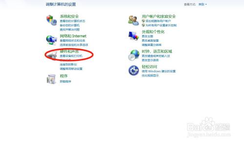 然后打开:硬件与声音;
