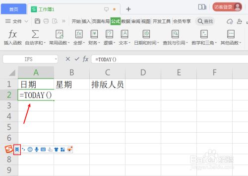 电脑打开表格,设置日期的函数“=TODAY()”。