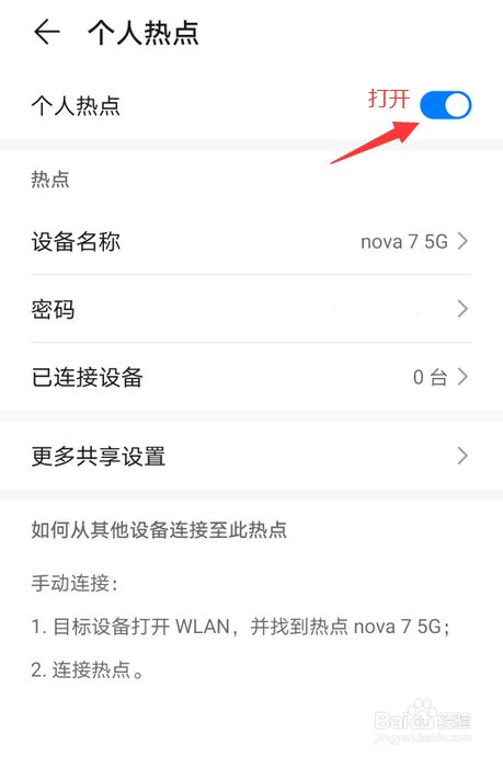 进入后,打开小我热点的开关。