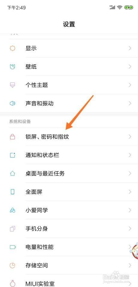 2、进入设置后,点击锁屏、密码和指纹,