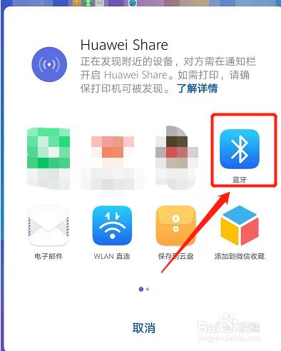 经由过程蓝牙分享,选择已配对的蓝牙设备进行发送。