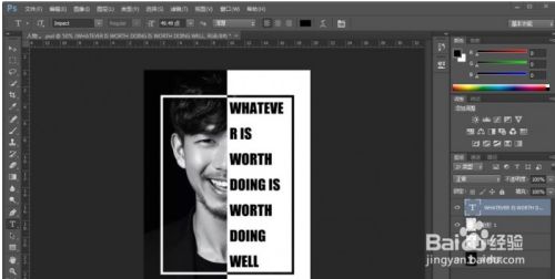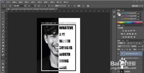 最后,按T利用文字东西,随意输入一些本身喜好的文字,使海报结果更佳,即可完当作。