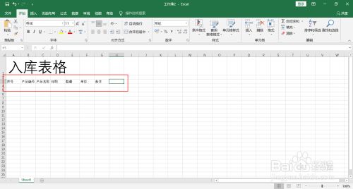 在表格内输入入库表格的题目。