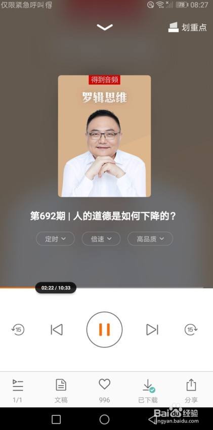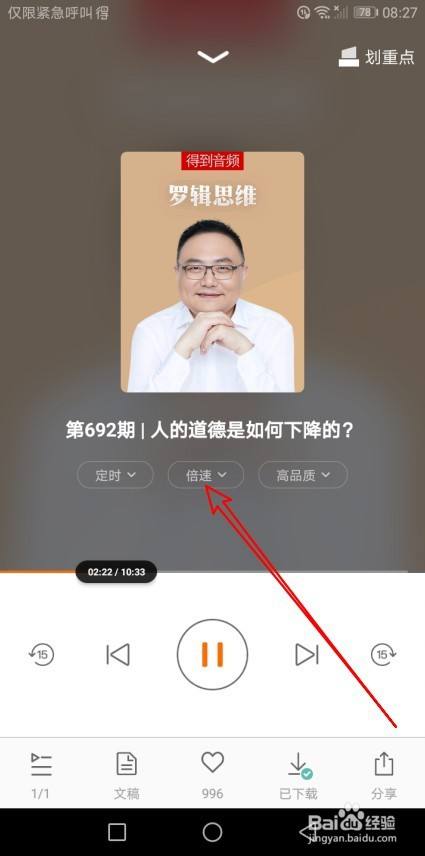 在打开的音频播放详情页面,点击倍速下拉按钮。