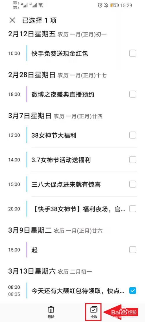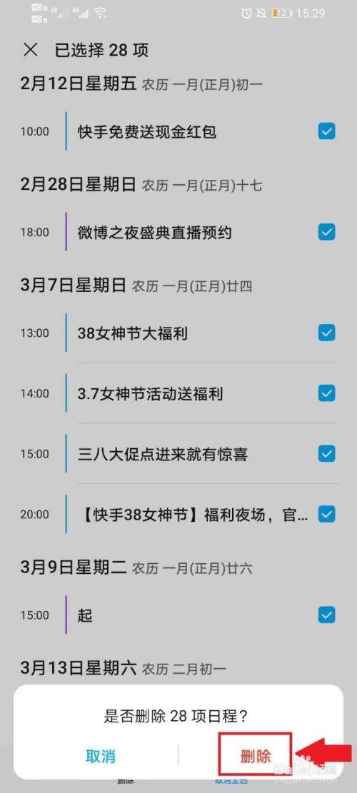 点击【删除】,即可删除全数的日历日程。