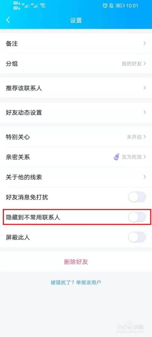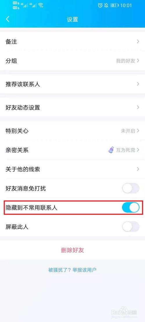 打开“埋没到不常用联系人”右侧的开关。