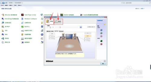 然后,在进入Realtek高清楚音频办理器设置界面后,我们点击Realtek高清楚音频办理器设置界面上方的【扬声器】或者【麦克风】选项卡,进入其设置界面;