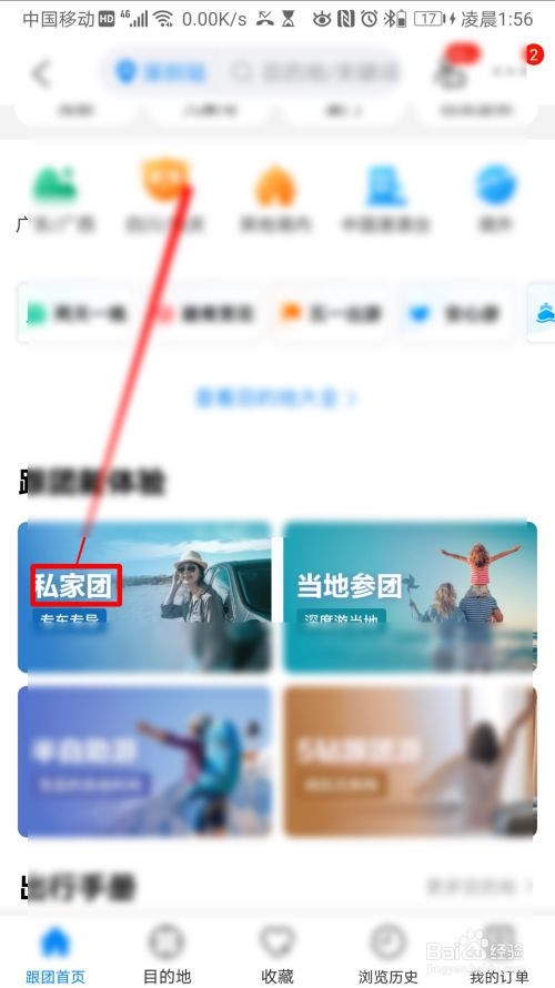 - 2在右上偏向,选择旅游。若是无法找到,请翻页或者上下滑动查找。