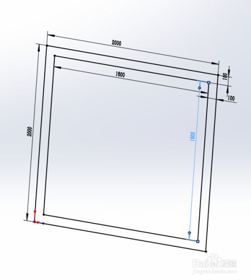 第二步,选择上视基准面,操纵草图东西,绘制2000×2000m的正方形,等距实体100mm;