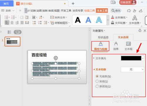 在文本选项,可以设置“填充与轮廓”。