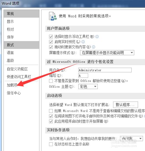 进入到以下窗口,将可加载项前的小钩点击去失落