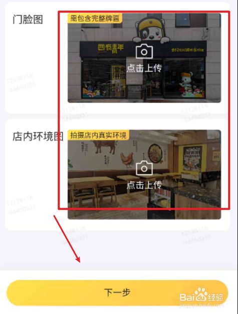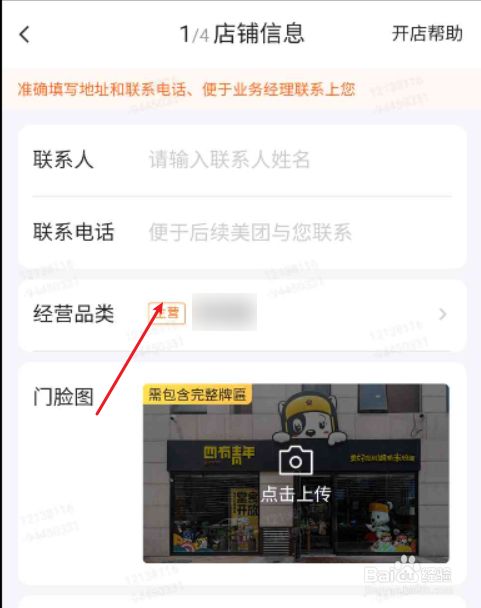 在店肆信息页面中,我们需要填入相关的联系人以及德律风号码。