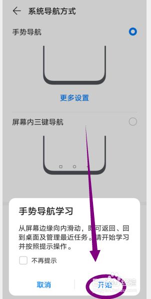 按照手机提醒进行手势导航进修,进修完当作背工机手势导航就开启了
