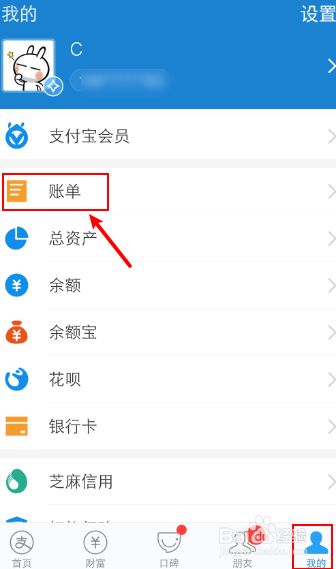 手机打开支付宝,在我的页面,点击“账单”。