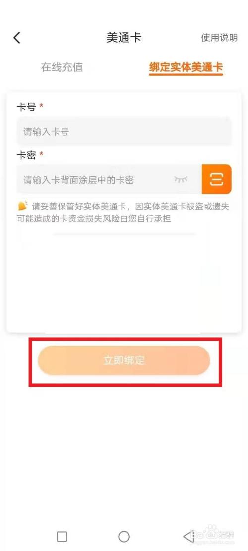 输入卡号卡密,点击完当作绑定,如图红色文本框: