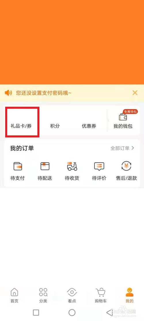 点击礼品卡,如图红色文本框: