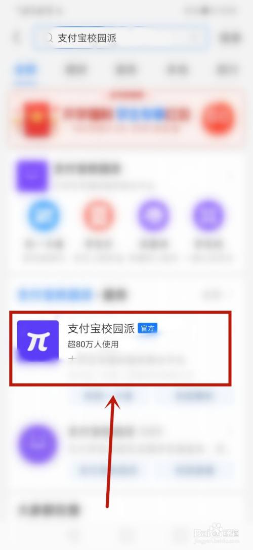 二.之后输入【支付宝校园派】,点击进入到应用中。