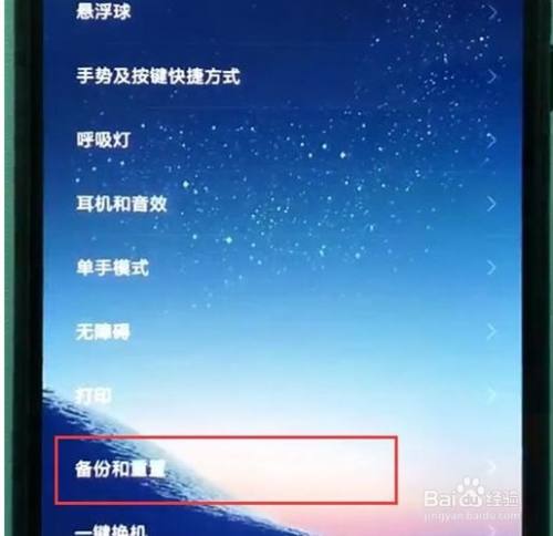 3、进入更多设置之后,找到【备份和重置】选项,点击打开。