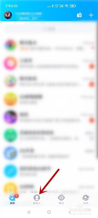 打开之后点击底部的“联系人”。