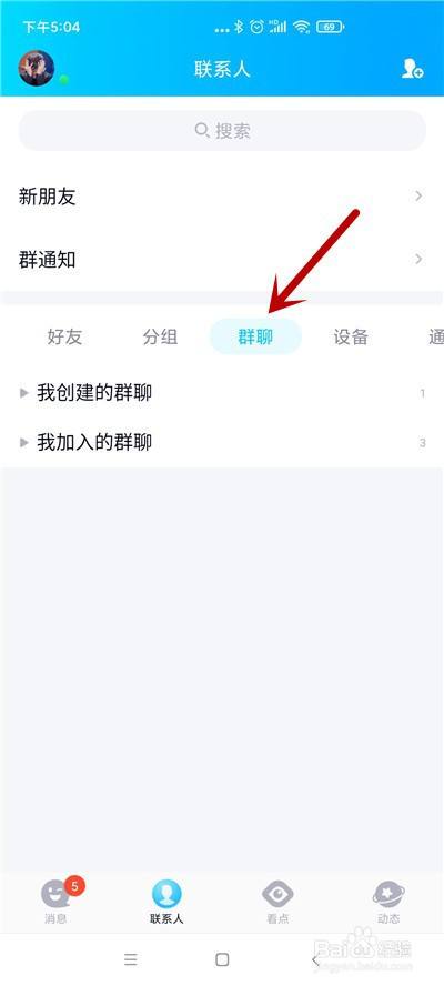 接下来点击“群聊”中的QQ群。