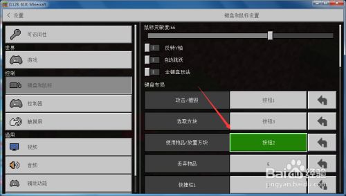 工具/原料Acer 4752Windows 7我的世界基岩版方式/步骤1点击“我的世界”启动按钮。2进入游戏界面。3按“ESC”键退出,再点击“设置”选项。4点击“键盘和鼠标”选项。5我的世界利用物品就是“按钮2”键。END注重事项tips:攻略小我清算,