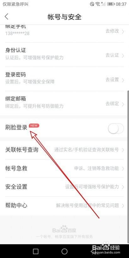 接下来在打开的页面,找到刷脸登录设置项。