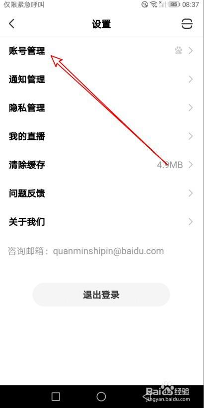 这时就会打开全民小视频设置页面,点击账号办理设置项。