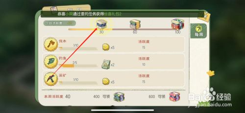工具/原料小森糊口iPhone XR方式/步骤1第一,打开手机上的“小森糊口”,如图。2第二,登录账号,而且点击“进入游戏”,如图。3第三,进入游戏之后,点击“每日”,如图。4第四,接着点击每日奖励中的“30活跃度礼包”,如图。5最后,点击之后,就可以获得响应的奖励了。END注重事项但愿对您有帮忙