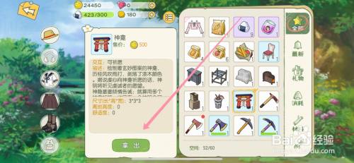 工具/原料iPhone12iOS14.5方式/步骤1首先进入游戏在自宅内点击背包2然后在背包内点击神龛3接着点击拿出4找到合适的位置后,点击放置按钮即可END注重事项请点个存眷或点个赞鼓动勉励我吧,您的撑持就是我创作的最大动力。