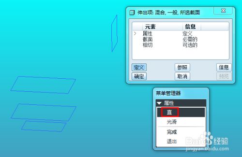 默认是选择“直”属性的成果,可以在对话框双击属性改为“滑腻”,成果显示如下图。因为每个截面之间不再是直线毗连,而是样条线毗连,四个截面毗连后就是一个滑腻的实体外形。