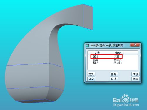 这里我们点“否”,不再需要继续曲线的选择。对话框点击预览,可以看到选择四条曲线完当作一般夹杂建立的实体结果。