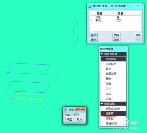 这里我们点“是”,然后进入第四条曲线的选择。选择曲线后,黄色箭头暗示肇端点,点击完当作会弹出对话框,扣问您是否需要增添下一个截面,需要点是,不需要点否。