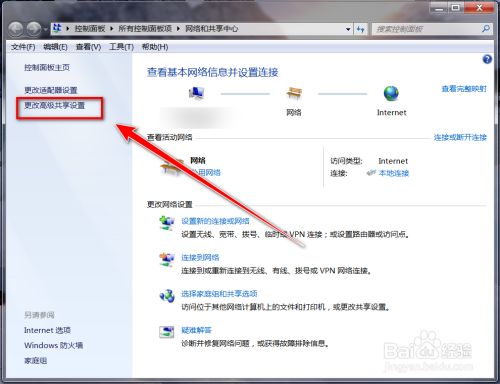 点击“更改高级共享设置”。