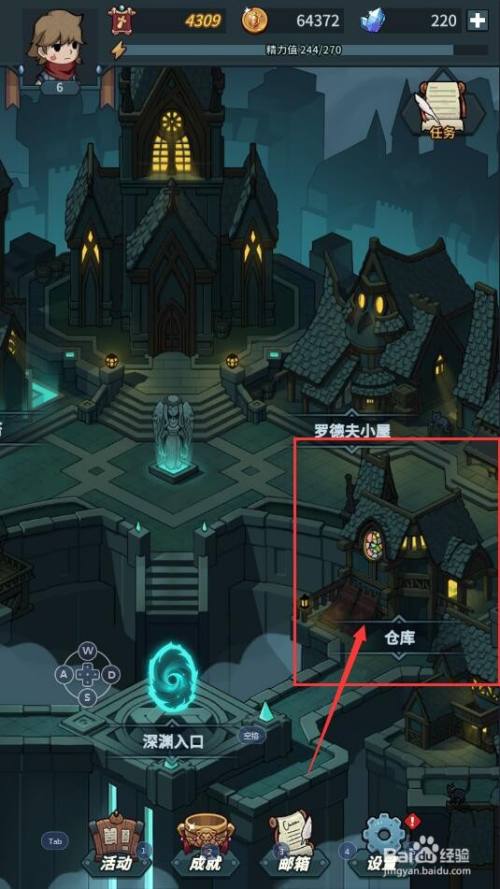 第二步,在我们进入到游戏本家儿界面后,我们点击仓库图标,进入仓库本家儿界面;